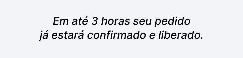 Em até 3 horas seu pedido já estará confirmado e liberado.